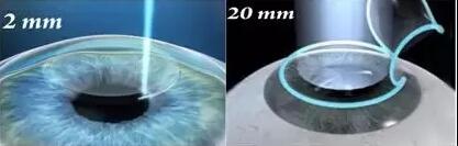 飛秒激光手術(shù)需要制作一個(gè)角膜瓣,并掀開角膜瓣對(duì)角膜基質(zhì)層進(jìn)行消融。因此飛秒激光的制作的角膜邊緣切口有大約20mm的切口。