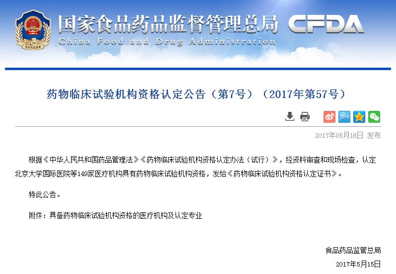 根據(jù)《藥物臨床試驗(yàn)質(zhì)量管理規(guī)范》、《藥品注冊管理辦法》《藥物臨床試驗(yàn)機(jī)構(gòu)資格認(rèn)定辦法》,經(jīng)資料審查和現(xiàn)場檢查,廈門大學(xué)附屬廈門眼科中心于2017年5月15日由國家食品藥品監(jiān)督管理總局發(fā)布的《藥物臨床試驗(yàn)機(jī)構(gòu)資格認(rèn)定公告》(第7號)(2017年第57號),通告我院藥物臨床試驗(yàn)機(jī)構(gòu)順利通過國家GCP資格認(rèn)定,予以頒發(fā)《藥物臨床試驗(yàn)機(jī)構(gòu)資格認(rèn)定證書》。