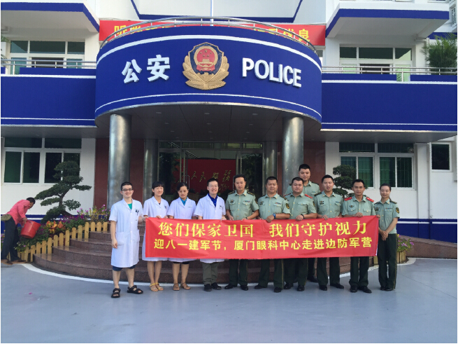 為迎接中國人民解放軍建軍88周年,秉著每年建軍節(jié)為官兵眼體檢的傳統(tǒng),7月30日下午,廈門眼科中心眼表與角膜病專家一行7人專程到思明區(qū)曾厝垵邊防所,開展健康咨詢、義診活動,并為邊防官兵贈送了眼藥水。