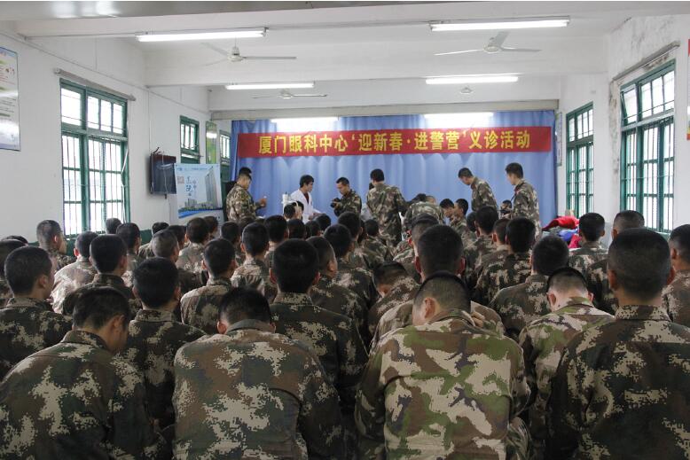 1月29日下午,廈門眼科中心眼表與角膜病專家一行9人冒著冬雨到翔安武警邊防支隊(duì)機(jī)動(dòng)大隊(duì),開展“迎新春 送健康”健康咨詢、義診活動(dòng),并為邊防支隊(duì)武警贈(zèng)送了進(jìn)口眼藥水。廈門眼科中心以實(shí)際行動(dòng)提前為武警邊防支隊(duì)致以新春祝福與問(wèn)候,并送去了健康。義診現(xiàn)場(chǎng)氣氛十分熱烈,義診從下午三點(diǎn)半一直持續(xù)到下午六點(diǎn),為近百名武警做了眼體檢。