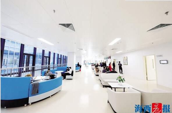 現(xiàn)代化的裝修、暖綠暖黃為主色調(diào)的環(huán)境讓人眼前一亮??剖议T診和住院樓層各種指引標(biāo)識清晰明確,隨處可見溫馨提示,還有志愿導(dǎo)引人員。階梯形前臺,讓坐在輪椅上也能與醫(yī)務(wù)人員無障礙溝通。等候就診時,你可以在按摩椅上來一場放松之旅,也可以漫步VIP候診區(qū)長廊欣賞名畫。在休息區(qū),休閑吧和兒童游樂區(qū)等可以緩解診療時帶來的陌生感和緊張感。同時,五緣院區(qū)還配有超千個地面、地下停車位,方便“有車一族”到院泊車。