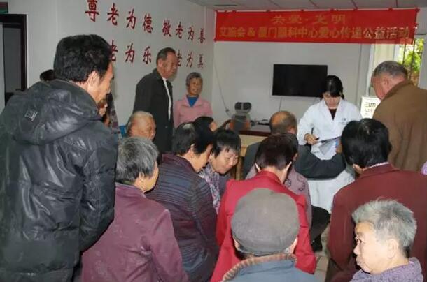 這一幕發(fā)生在4月27日,“關(guān)愛• 光明”艾施會攜手廈門眼科中心,愛心傳遞公益活動中。當(dāng)天雖然下著小雨,但澳溪村老人活動中心內(nèi)還是擠滿了人。