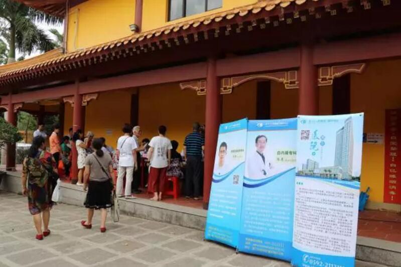 “南無(wú)藥師琉璃光如來(lái),南無(wú)藥師琉璃光如來(lái)……”10月7日上午,佛音繚繞,檀香裊裊中,廈門(mén)大學(xué)附屬?gòu)B門(mén)眼科中心醫(yī)療隊(duì)聯(lián)合廈門(mén)新開(kāi)元醫(yī)院醫(yī)療隊(duì)來(lái)到廈門(mén)海滄區(qū)石室禪院開(kāi)展義診活動(dòng)。