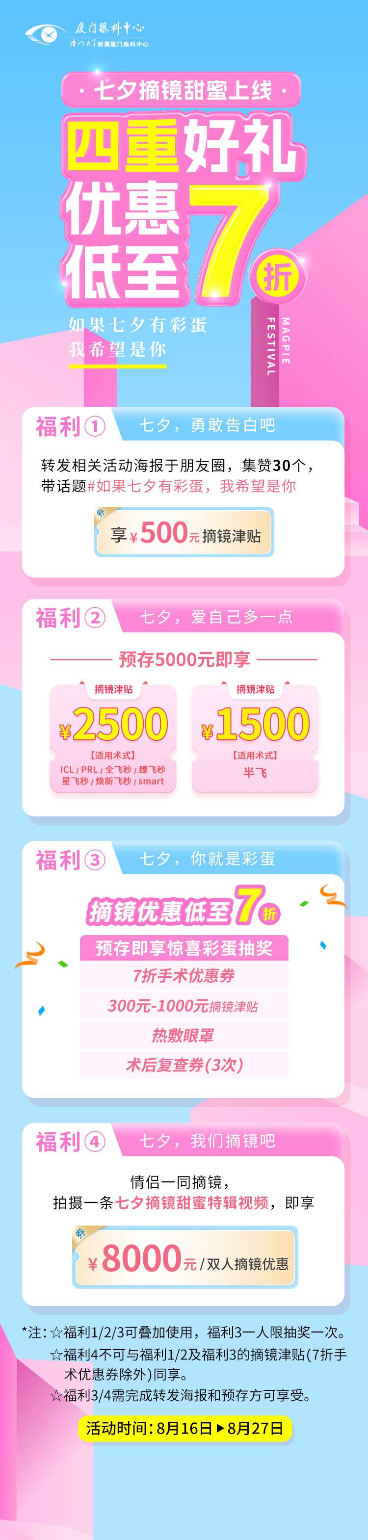 廈門(mén)眼科中心近視手術(shù)優(yōu)惠至高10800元,七夕節(jié)摘鏡優(yōu)惠來(lái)了!