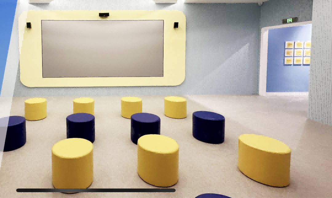 可容納45人的多媒體宣講區(qū),配備20套VR頭盔和手柄,通過生動(dòng)有趣的短視頻讓孩子們?cè)跉g樂的氛圍中學(xué)習(xí)眼健康知識(shí)。