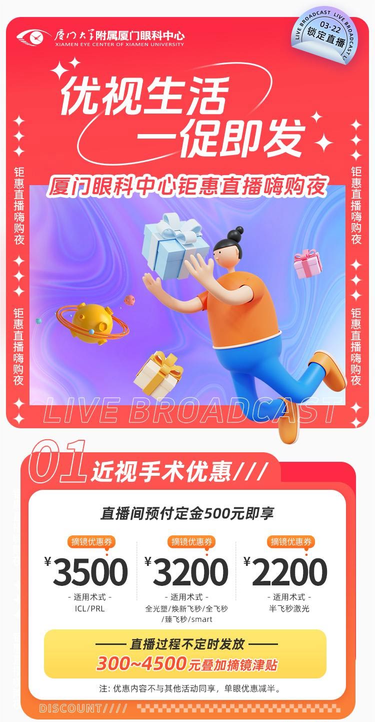 至高8000元近視手術(shù)津貼、配鏡檢查套餐低至19.9元!廈門(mén)眼科中心直播活動(dòng)來(lái)啦→