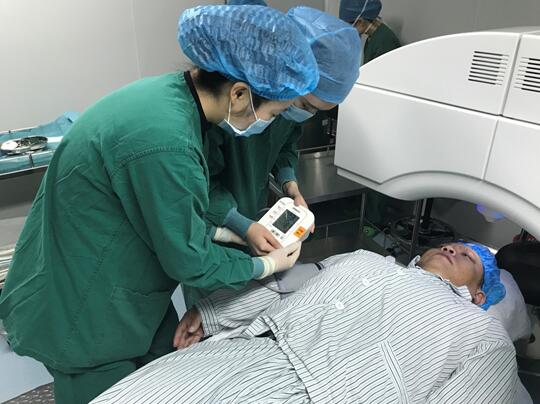 在朋友的介紹下,陳先生來到廈門眼科中心屈光手術(shù)中心找黎新主任做術(shù)前檢查。了解到他曽有腦溢血病史,在陳先生做完術(shù)前檢查后,黎新主任聯(lián)合內(nèi)科專家、麻醉科專家以及屈光手術(shù)中心的護理團隊一起進行了會診,會診后專家們一致認為雖然陳先生患過腦溢血,但目前已經(jīng)治好,而且近年來血壓控制得當,以檢查的情況來看,目前他的血壓控制在120mmHg 85mmHg,屬于正常范圍內(nèi),血壓穩(wěn)定的話通常是可以進行近視手術(shù)的。