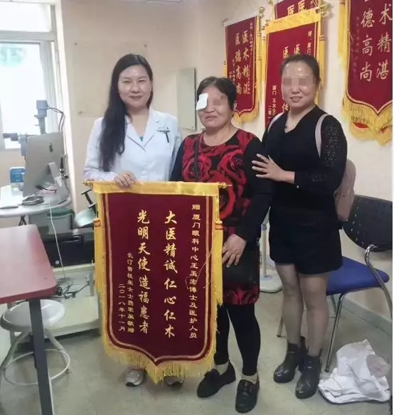 【文章導讀】凜冬已至,寒流來襲。一天忙碌的工作才剛剛開始,廈門大學附屬廈門眼科中心青光眼專科門診就熱鬧了起來,原來是已經(jīng)出院的患者曾大媽再次回到醫(yī)院,給王玉宏主任送來了一面錦