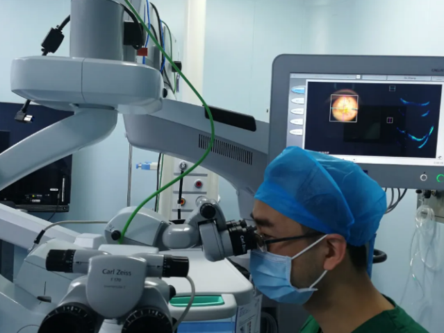 為防止病情加劇,吳國基院長和王曉波副主任聯(lián)合會診后告知曾先生,雖然眼底病情已發(fā)展到晚期,提高視力可能性不大,但手術還是有機會改善,建議曾先生盡快手術。第二天曾先生接受了左眼玻璃體腔內(nèi)注射抗VEGF藥物,減少出血,兩天后再行“左眼玻璃體切割術、硅油填充術”等相關治療。