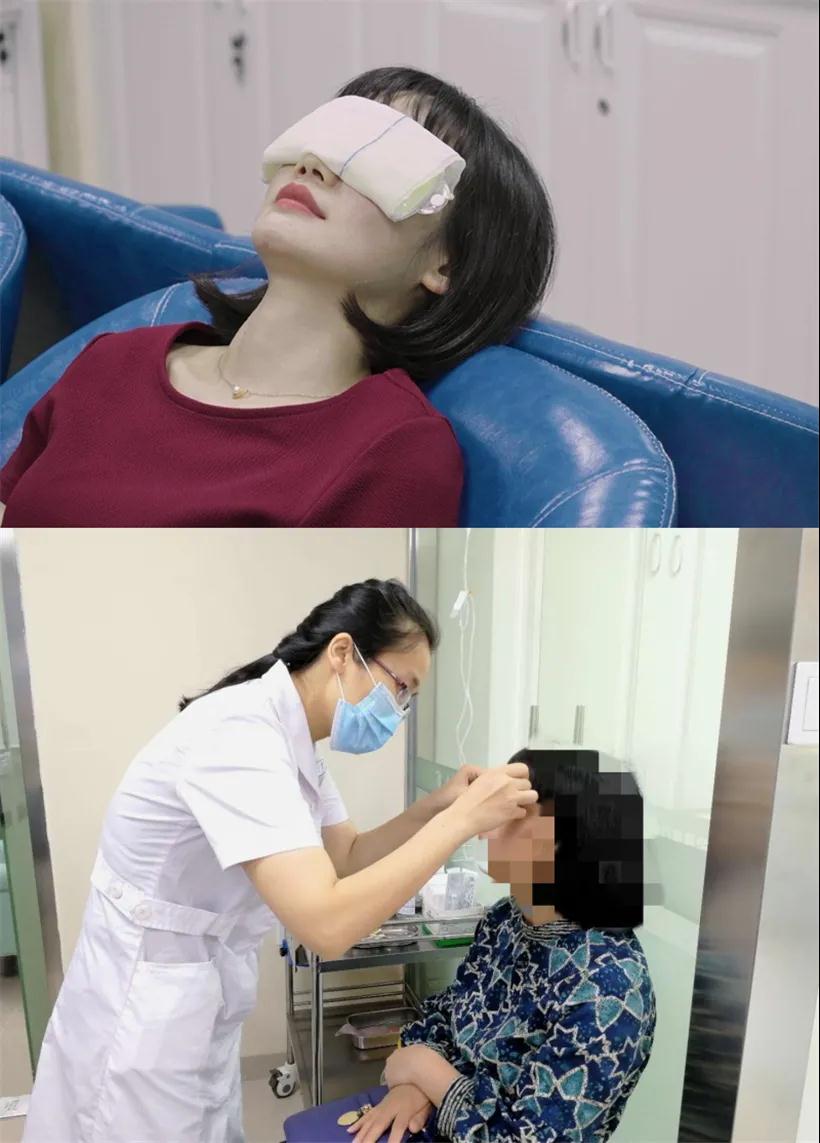當(dāng)天先是為小軒進(jìn)行雙眼熱敷,聯(lián)合瞼板腺疏通,擠出堵塞的顆粒狀分泌物。然后再做霧化熏蒸,通過對(duì)眼周進(jìn)行熏蒸,使藥物能直接到達(dá)瞼板腺開口,有助于擴(kuò)張瞼板腺,控制瞼緣炎癥。