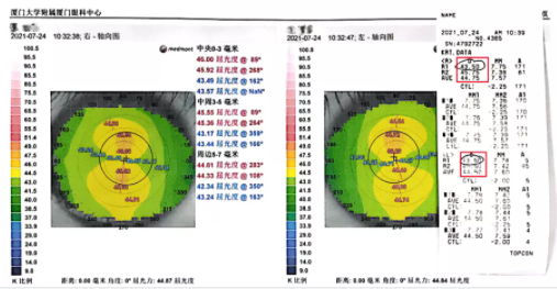 再看看涵涵停戴后的復(fù)查數(shù)據(jù),其角膜曲率幾乎沒有變化。