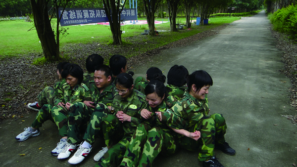 一開始大家沒有掌握到這項訓練實質(zhì)上的意義,只是一味想著自己要站起來,結果無論是我們的“勇者無敵隊”還是“必勝莊園隊”都以失敗告終。要么剛站起來一半,就被旁邊的伙伴拉下去了;要么根本就找不到支點,沒辦法起來;要么已經(jīng)站起來了,還有伙伴沒有同時起來,仍然視為失敗。