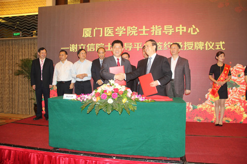 廈門市衛(wèi)生計生委副主任吳再陽與謝立信院士共同簽署協(xié)議