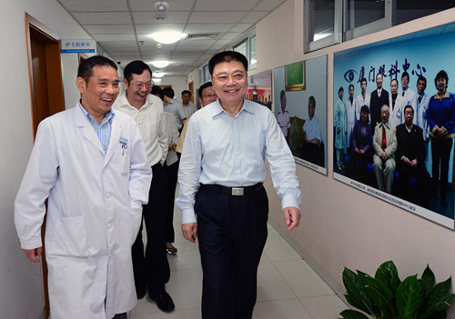 近日,省委常委、市委書記王蒙徽前往廈門眼科中心,看望了醫(yī)療團(tuán)隊(duì)和接受眼角膜捐贈(zèng)的康復(fù)患者。市領(lǐng)導(dǎo)鐘興國、國桂榮,衛(wèi)計(jì)委楊叔禹、洪豐穎、王挹青等領(lǐng)導(dǎo)隨同慰問。