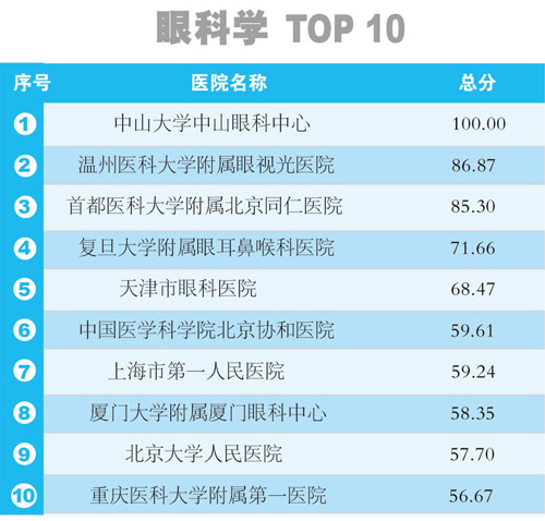 2014年度中國醫(yī)院科技影響力排行榜(眼科學)