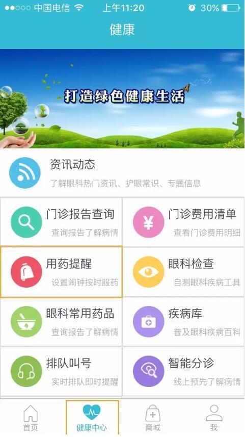 PS:其實(shí),不少患者都服用多種藥物,一時難免記不住而弄混,眼科通APP設(shè)置了“用藥提醒”功能。打開APP,在“健康中心”里,有“用藥提醒”欄目,患者可設(shè)置藥品名稱、劑量、注意事項、服用時間,到點(diǎn)后,會有鬧鐘提醒,方便患者進(jìn)行用藥管理。