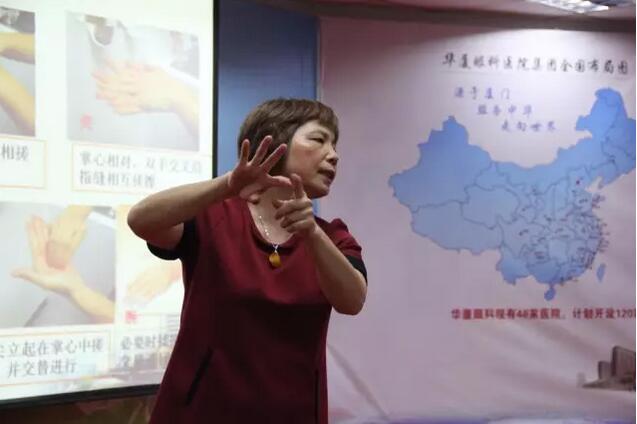 廈門市第*醫(yī)院院感管理部的葉麗娟主任現(xiàn)場教授“七步揉搓法”