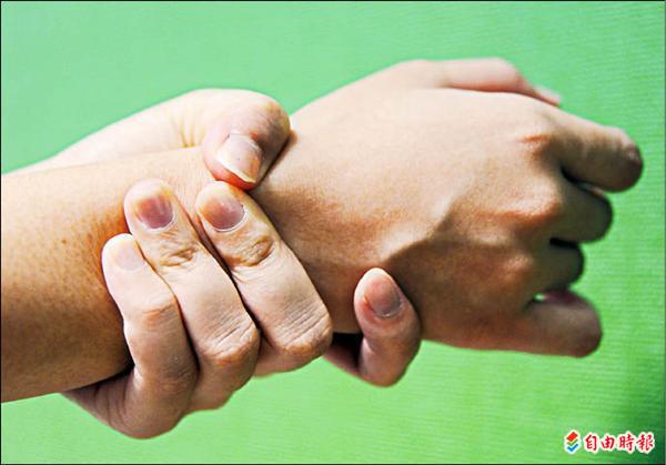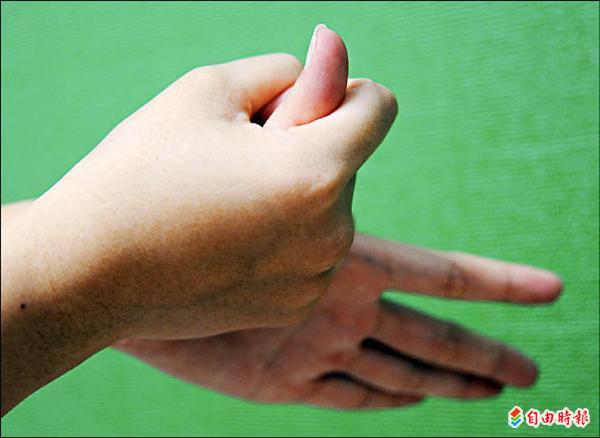 彎曲手指關(guān)節(jié)在掌心揉搓