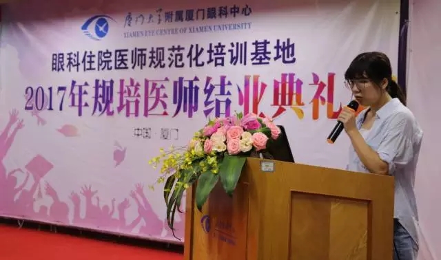 8月31日下午,廈門大學(xué)附屬廈門眼科中心2017年住院醫(yī)師結(jié)業(yè)典禮在眼科17樓會議室舉行。黎曉新、趙堪興、吳國基、王騫、侯家敏、張廣斌等我院及集團領(lǐng)導(dǎo),各學(xué)科帶頭人、各行政職能部門負責人、各專業(yè)基地負責人、教學(xué)主任、教學(xué)秘書、帶教老師及全體規(guī)培學(xué)院出席了典禮。典禮由行政院長李曉峰主持。