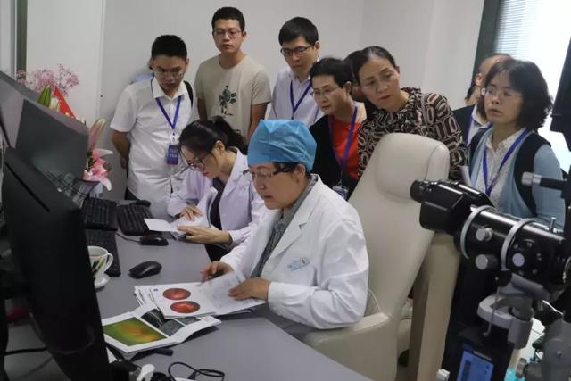 在廈門(mén)眼科中心五緣院區(qū)學(xué)員們觀摩了與眼科學(xué)發(fā)展息息相關(guān)的各類(lèi)前沿的光學(xué)設(shè)備,包括德國(guó)OCT3光學(xué)相關(guān)斷層掃描儀、ZEISS眼底相干光層析血管成像儀OCTA、 ZEISS VISULAS:YAG眼科激光治療儀、英國(guó)歐寶全景200廣角激光眼底照相機(jī)等各類(lèi)前沿的特檢設(shè)備。