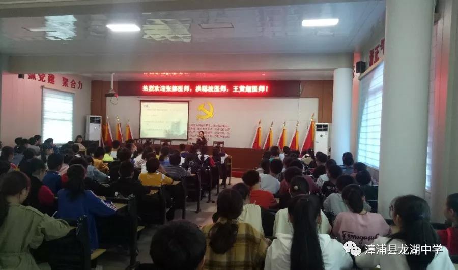2019年12月17日下午,廈門大學(xué)附屬廈門眼科中心走進漳浦縣龍湖中學(xué),響應(yīng)國家提倡預(yù)防和控制青少年近視的政策,與龍湖中學(xué)共同開展青少年近視防控講座,主題是“近視防控,愛眼護眼,從你我做起”。龍湖中學(xué)校長蔡漢云,廈門大學(xué)眼科中心視光科任小軍主任醫(yī)生,洪聰波、劉淑婷、張娜、王黃超醫(yī)師,龍湖中學(xué)有關(guān)領(lǐng)導(dǎo),七年1班、2班、3班班主任和三個班的全體學(xué)生近兩百人參加講座。