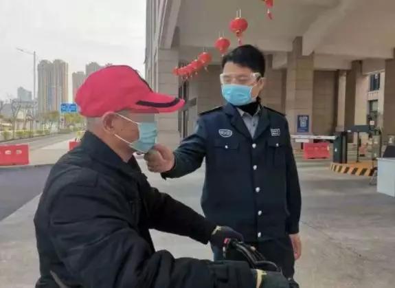 戴上護(hù)目鏡、口罩,拿起手中的額溫槍?zhuān)0苍陂T(mén)崗為入院人員測(cè)量體溫,守好崗。
