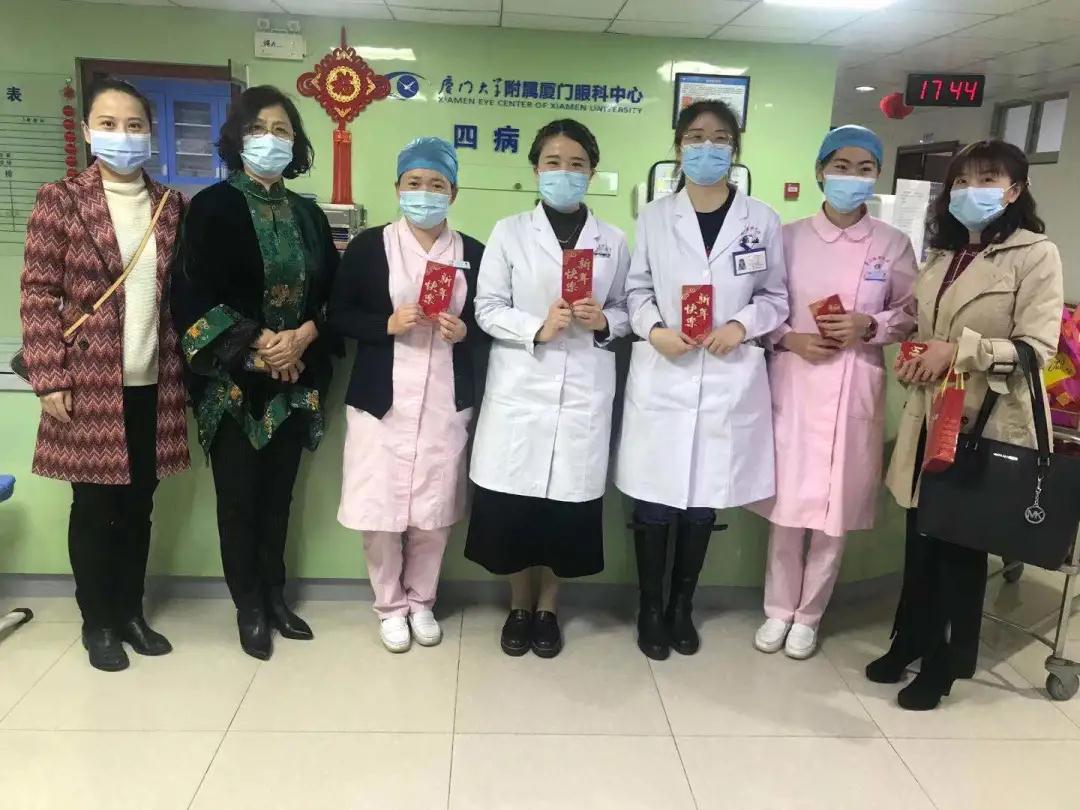 眼科醫(yī)院集團(tuán)黨委書記陳逸恬、廈門眼科中心業(yè)務(wù)副院長潘美華教授、廈門眼科中心執(zhí)行總經(jīng)理姚鄭玲玲、廈門眼科中心副總經(jīng)理黃妮婭、廈門眼科中心物業(yè)部主任洪馬超等院領(lǐng)導(dǎo)班子成員及醫(yī)院中層干部深入病區(qū),看望并慰問春節(jié)期間堅(jiān)守一線的醫(yī)務(wù)人員、值班后勤人員及住院病人,向大家送去了新年慰問品,并致以新春的問候。
