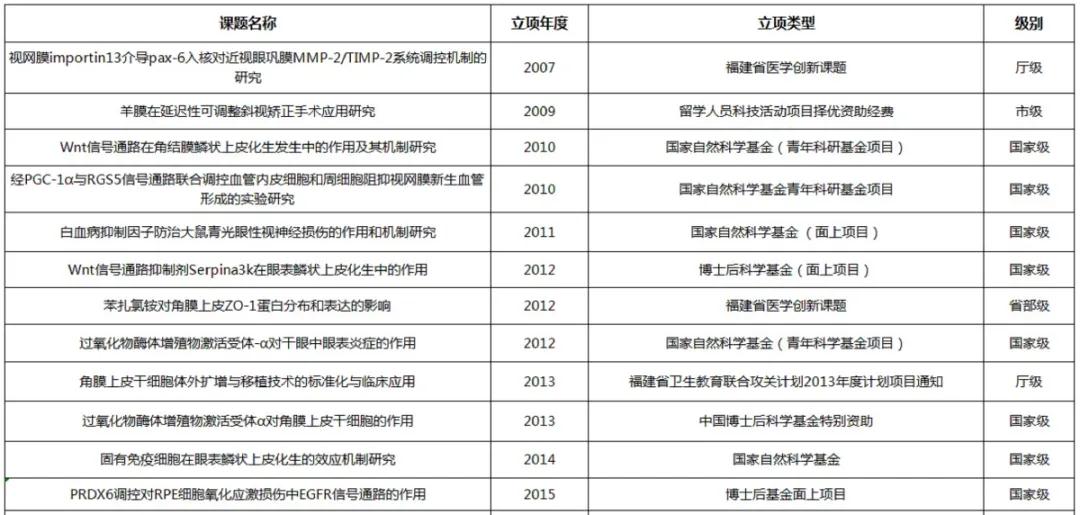 人才的引進(jìn)為醫(yī)院的發(fā)展注入“源動(dòng)力”。在廈門大學(xué)醫(yī)學(xué)院的引領(lǐng)下,廈門大學(xué)附屬?gòu)B門眼科中心大力推動(dòng)技術(shù)創(chuàng)新,科研技術(shù)長(zhǎng)足進(jìn)步,不斷增強(qiáng)百姓就醫(yī)獲得感。截至2020年,中心已完成院內(nèi)973、863、國(guó)家重大研究計(jì)劃、國(guó)家自然科學(xué)基金42項(xiàng),省市級(jí)課題120余項(xiàng),獲得三項(xiàng)省部級(jí)科技進(jìn)步一等獎(jiǎng)。
