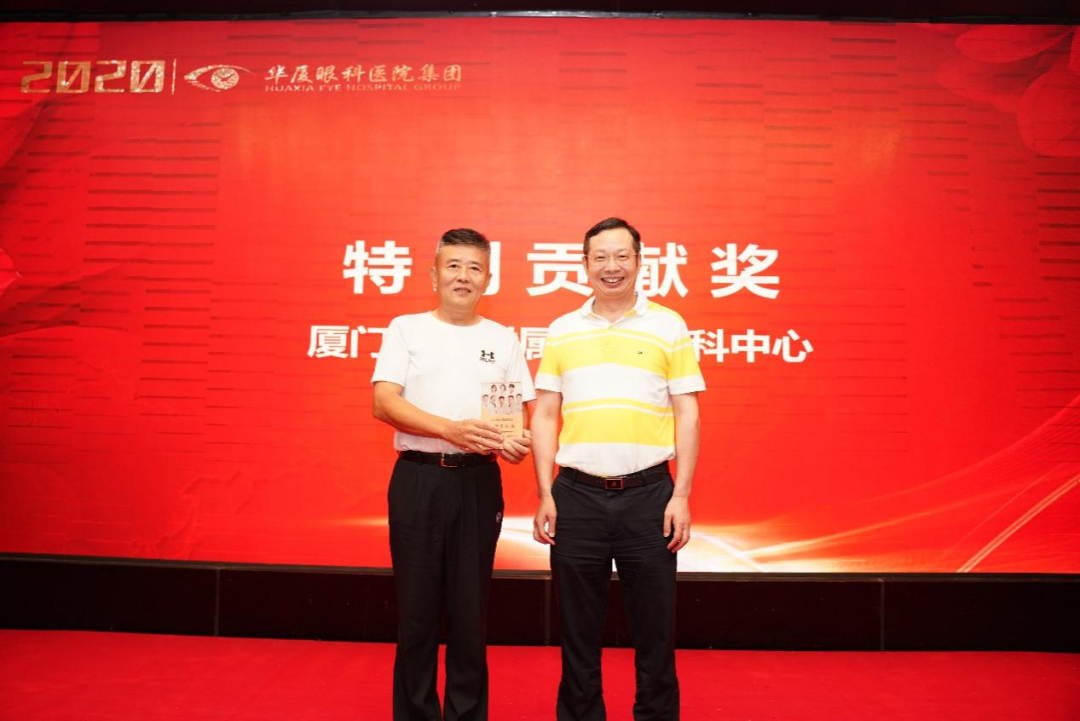 ▲蘇慶燦先生為廈門大學附屬廈門眼科中心頒發(fā)2020年屈光項目特別貢獻獎