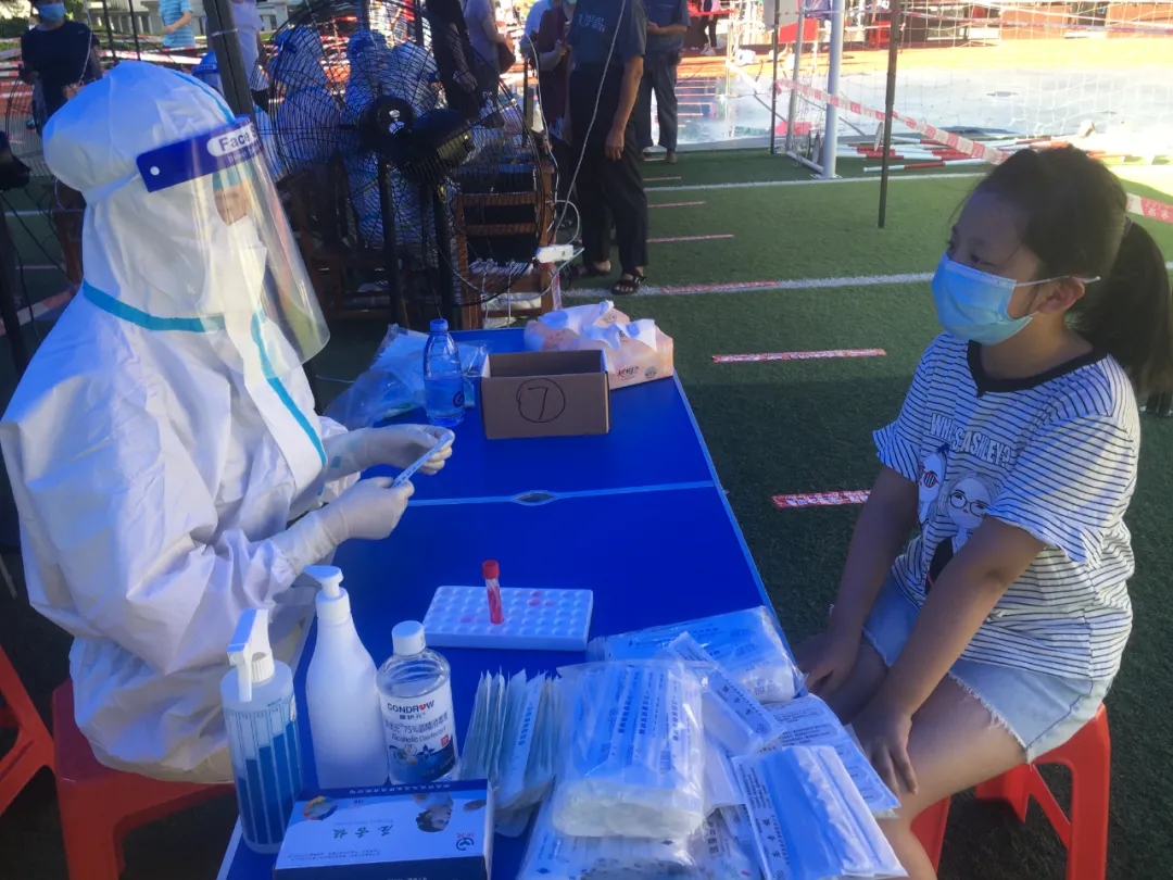 每次來做核酸檢測的人特別多,天氣又特別熱。小到幾個月的嬰兒,大到拄著拐杖的80多歲老人,看他們從烈日中來,滿頭大汗。我能做的也只有盡快撕開拆樣本包裝、盡快消毒,爭分奪秒讓他們早點回家。