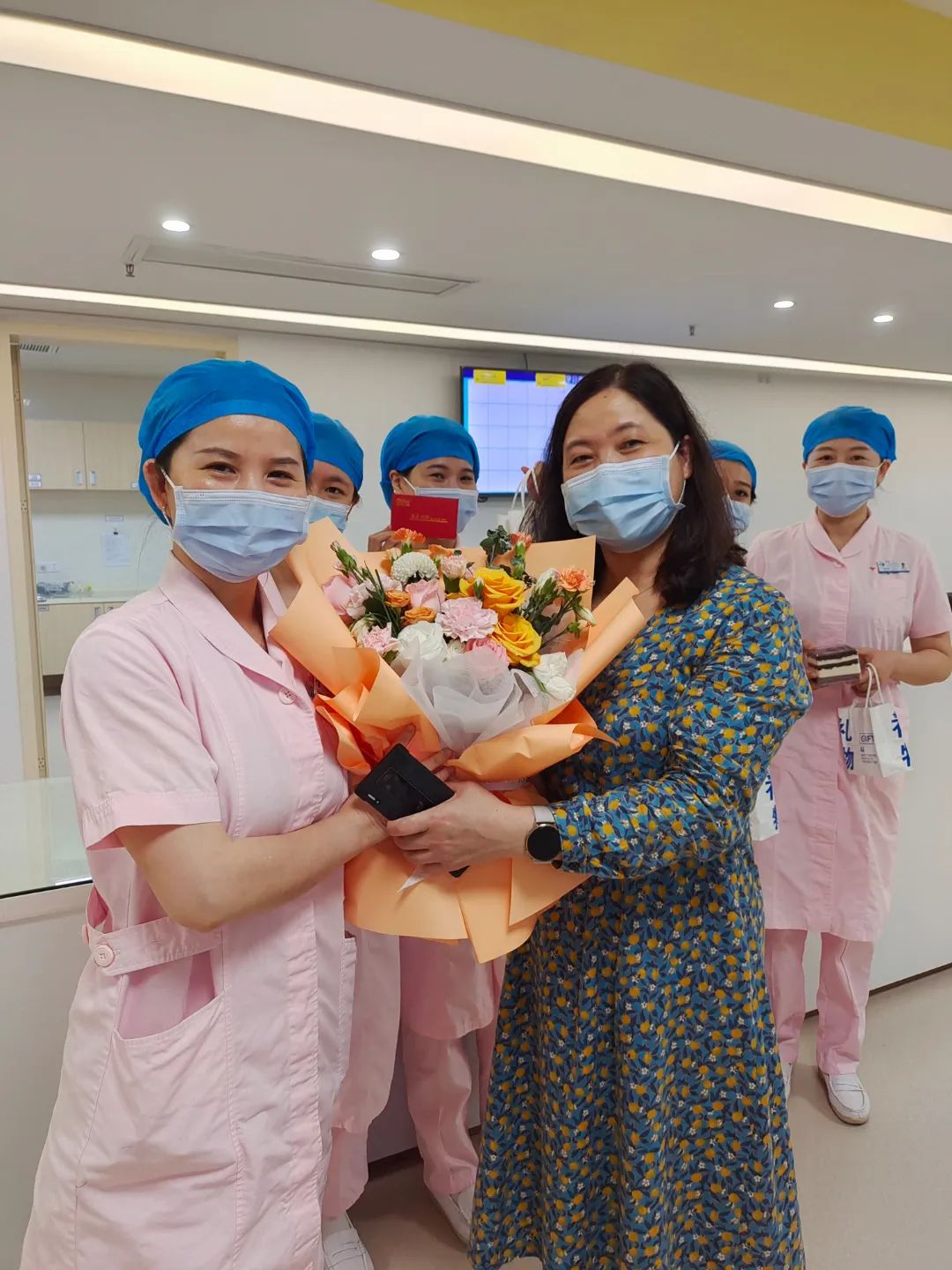 護(hù)理人員非常感謝院領(lǐng)導(dǎo)、護(hù)理部及工會(huì)對(duì)大家的節(jié)日祝福,喜笑顏開地與領(lǐng)導(dǎo)們合影留念,到處充滿了節(jié)日的喜慶氣氛。院領(lǐng)導(dǎo)的每一句叮囑,都體現(xiàn)了對(duì)臨床一線護(hù)理人員的濃濃關(guān)愛,激勵(lì)著在場每一位護(hù)士。