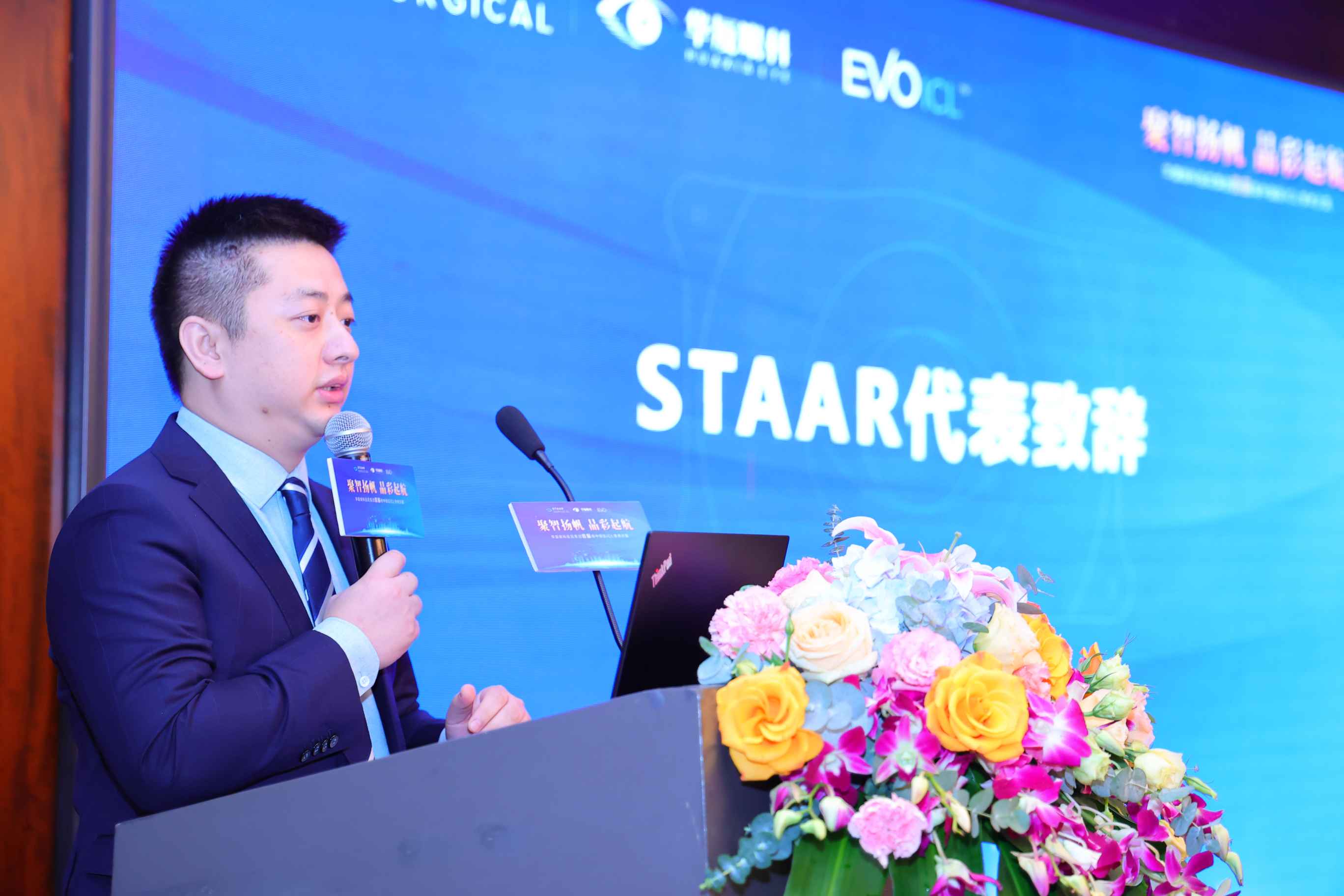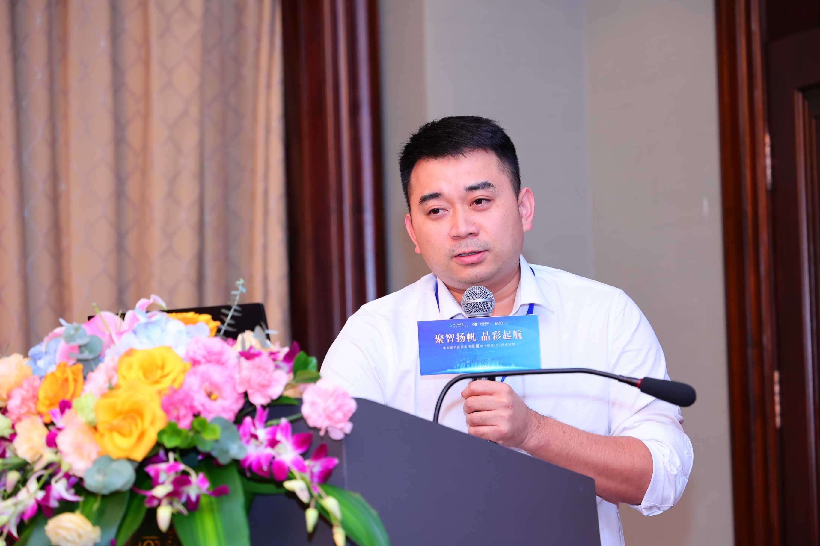 STAAR Surgical公司代表余洋在本次會(huì)議中致辭,祝賀會(huì)議順利召開,同時(shí)表示將不斷強(qiáng)化與華廈眼科醫(yī)院集團(tuán)合作深度和維度,全方位支持ICL項(xiàng)目的開展。
