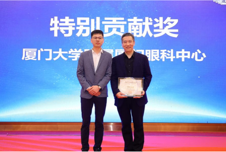 ▲ 燕振國(guó)教授為廈門(mén)眼科中心頒發(fā)“屈光技術(shù)鼎新獎(jiǎng)”