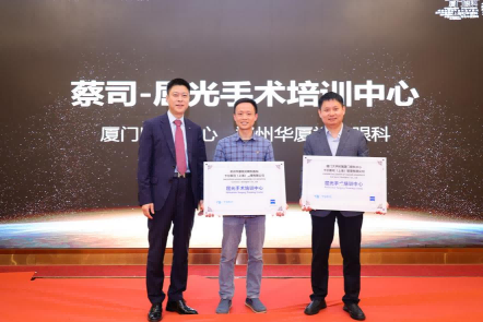 ▲蔡司醫(yī)療屈光事業(yè)部負(fù)責(zé)人李寧先生為廈門(mén)眼科中心授牌,共建蔡司屈光手術(shù)培訓(xùn)中心。