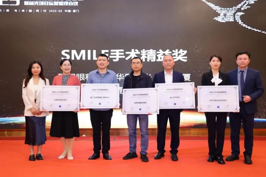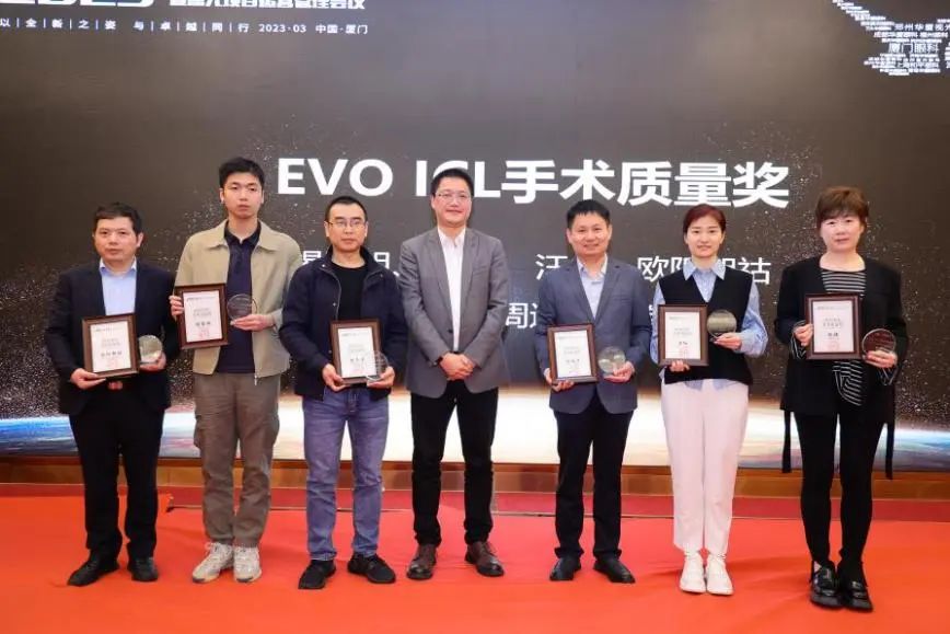 隨后,2022年度眼屈光學(xué)科各類(lèi)優(yōu)秀獎(jiǎng)項(xiàng)進(jìn)行了同步表彰,廈門(mén)眼科中心獲得多項(xiàng)殊榮,其中包括“2022年屈光項(xiàng)目特別貢獻(xiàn)獎(jiǎng)”、“屈光技術(shù)鼎新獎(jiǎng)”、“蔡司屈光手術(shù)培訓(xùn)中心”、“EVO ICL培訓(xùn)中心”、“個(gè)性化微飛秒全球認(rèn)證屈光中心”、“SMILE手術(shù)精益獎(jiǎng)”、“全飛秒科普貢獻(xiàn)獎(jiǎng)”等授牌,屈光手術(shù)中心多位醫(yī)生被授予“EVO ICL手術(shù)質(zhì)量獎(jiǎng)”、“EVO ICL手術(shù)質(zhì)量卓越獎(jiǎng)” 。