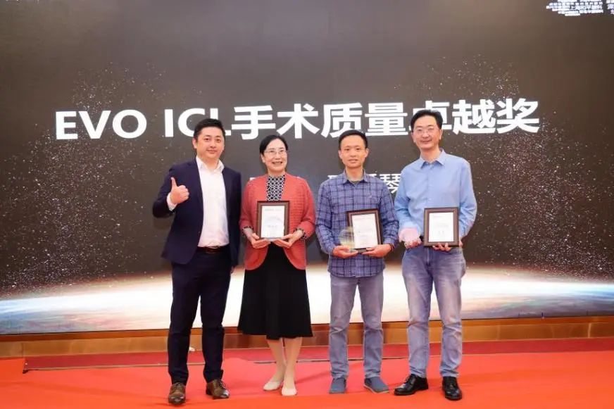 ▲ STAAR Surgical公司區(qū)域銷(xiāo)售經(jīng)理陳矛先生為揭黎明頒發(fā)“EVO ICL手術(shù)質(zhì)量獎(jiǎng)”。