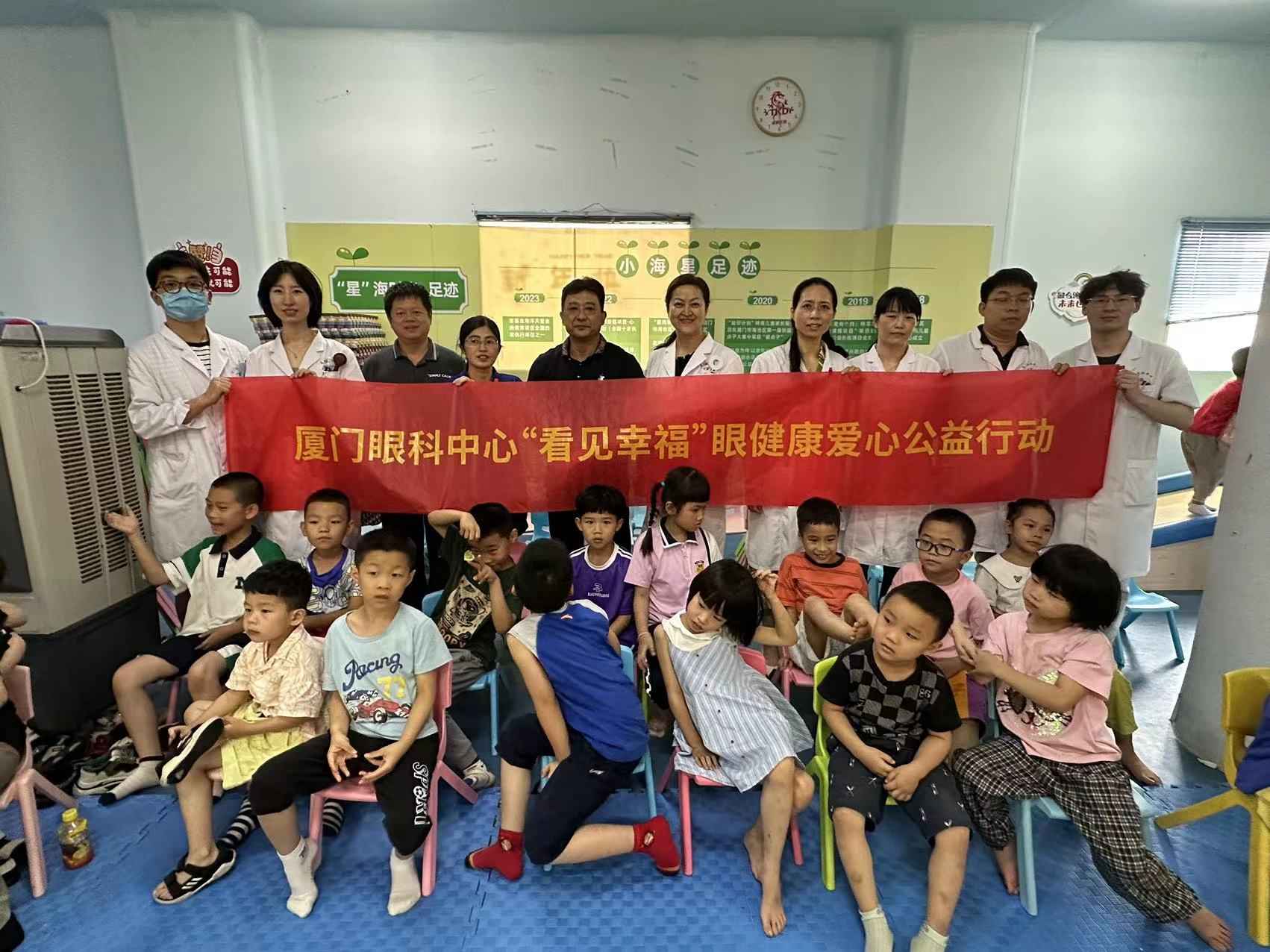 近日,為守護(hù)特需兒童的光明未來,在廈門市「愛心廈門」建設(shè)工作領(lǐng)導(dǎo)小組辦公室及海滄區(qū)殘疾人聯(lián)合會的指導(dǎo)下,廈門眼科中心「看見幸?!寡劢】倒骓椖恐驹刚叻?wù)隊在業(yè)務(wù)副院長、斜視與小兒眼病中心學(xué)科帶頭人潘美華教授的帶領(lǐng)下,來到了海滄區(qū)小海星特殊兒童服務(wù)中心,為特需兒童們開展了一場特殊的眼健康公益篩查診療活動。