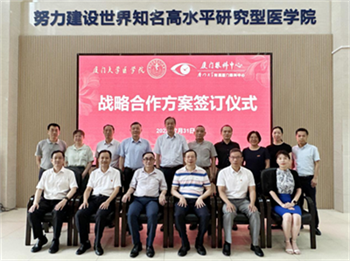7月31日下午,廈門大學(xué)附屬?gòu)B門眼科中心與廈門大學(xué)醫(yī)學(xué)院在廈門大學(xué)翔安校區(qū)舉行戰(zhàn)略合作方案簽訂儀式,雙方簽署戰(zhàn)略合作協(xié)議并進(jìn)一步深化醫(yī)療、教學(xué)和科研領(lǐng)域的合作。廈門眼科中心董事長(zhǎng)蘇慶燦,中國(guó)科學(xué)院院士、廈門大學(xué)醫(yī)學(xué)院院長(zhǎng)韓家淮代表雙方進(jìn)行簽約。