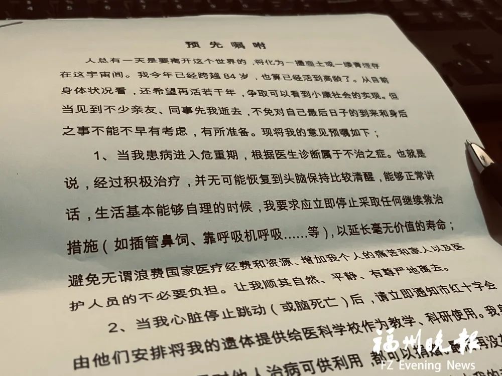 預(yù)囑中,彭老提到,當(dāng)病情進(jìn)入危重期,屬于不治之癥時(shí),不要做無(wú)謂搶救,以延長(zhǎng)毫無(wú)價(jià)值的壽命,“避免無(wú)謂浪費(fèi)國(guó)家醫(yī)療經(jīng)費(fèi)和資源、增加我個(gè)人的痛苦和家人以及醫(yī)護(hù)人員的不必要負(fù)擔(dān)。讓我順其自然、平靜、有尊嚴(yán)地離去”。