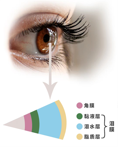 我們的眼睛會(huì)分泌淚液,而淚液會(huì)在我們眼睛表面形成一層淚膜,它是由三種成分組成,分別是油脂、水液、黏蛋白。