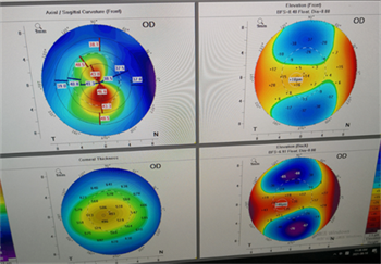 角膜地形圖檢查體現(xiàn)的角膜前后表面曲率、瞳孔中心及位置、角膜頂點(diǎn)和厚度等,可真實(shí)反映角膜形態(tài),幫助醫(yī)生快速直觀診斷、排查圓錐角膜。