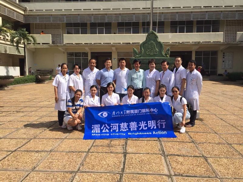 2016年10月21日,科室跟隨柬埔寨光明行先遣醫(yī)療組冒著臺風(fēng)天轉(zhuǎn)道啟程前往金邊,為當(dāng)?shù)?00多名貧困白內(nèi)障患者免費施行手術(shù)。用充滿愛與責(zé)任的人文情懷澆灌中柬“友誼之花”。